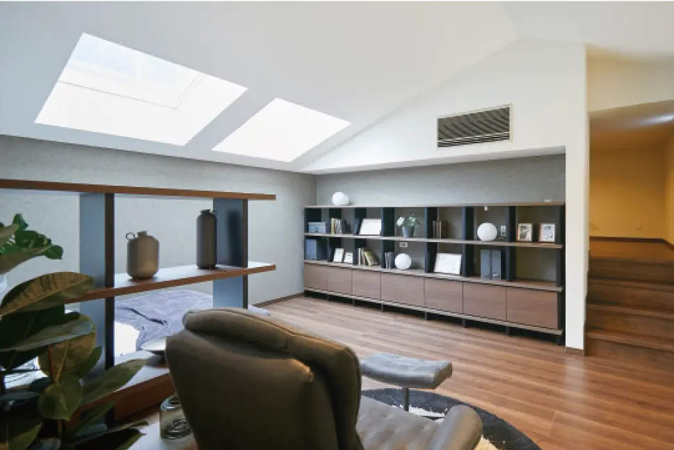 1.5階、2.5階など上下階の間に設けたプラスアルファスペース。空間をタテで捉えれば、住まいの可能性が広がります。
